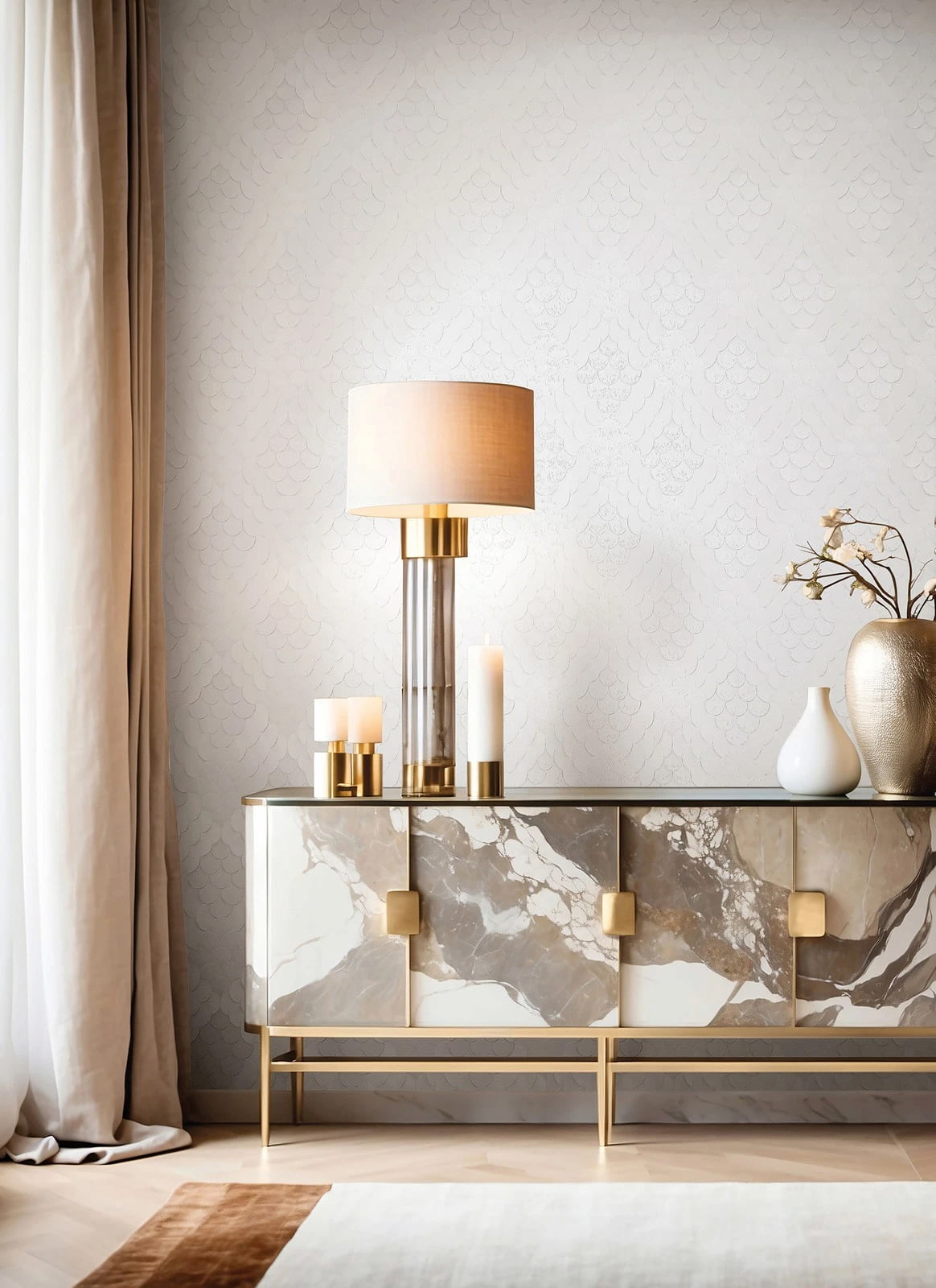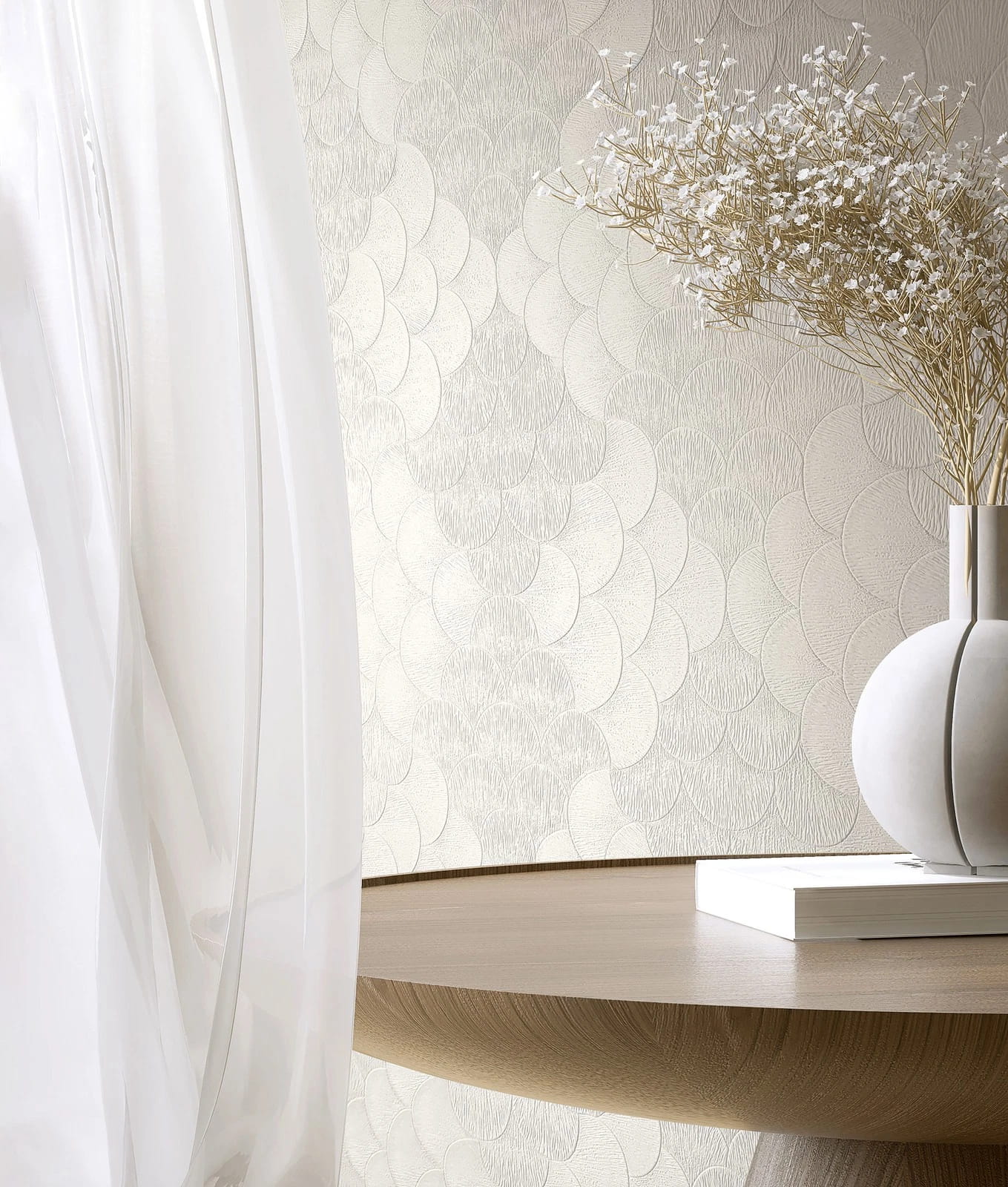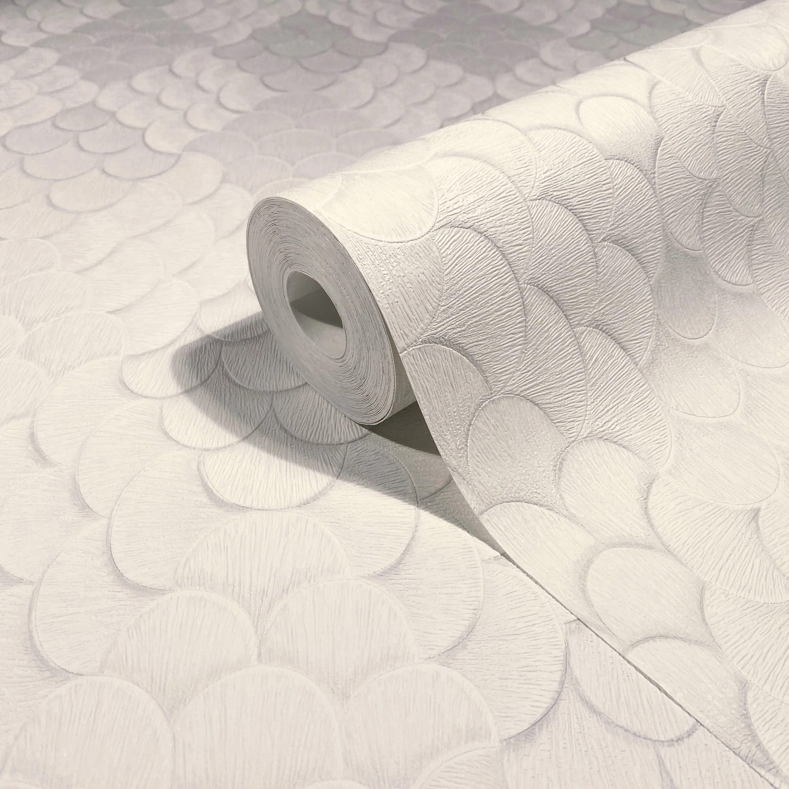 Mit dieser Tapete aus der Kollektion Fashion Icon von Papis Loveday in Kooperation mit Marburg holst du dir Haute Couture als maßgeschneiderte Wandmode in dein Zuhause. Dabei vereint sie stilvolle Eleganz mit außergewöhnlichem Wanddesign. Die Vliestapete 35810 zeigt ein Muster, das an Schuppen erinnert mit 3D-Effekt in Creme- und Grautönen. Entdecke die gesamte Kollektion bei uns im Shop.