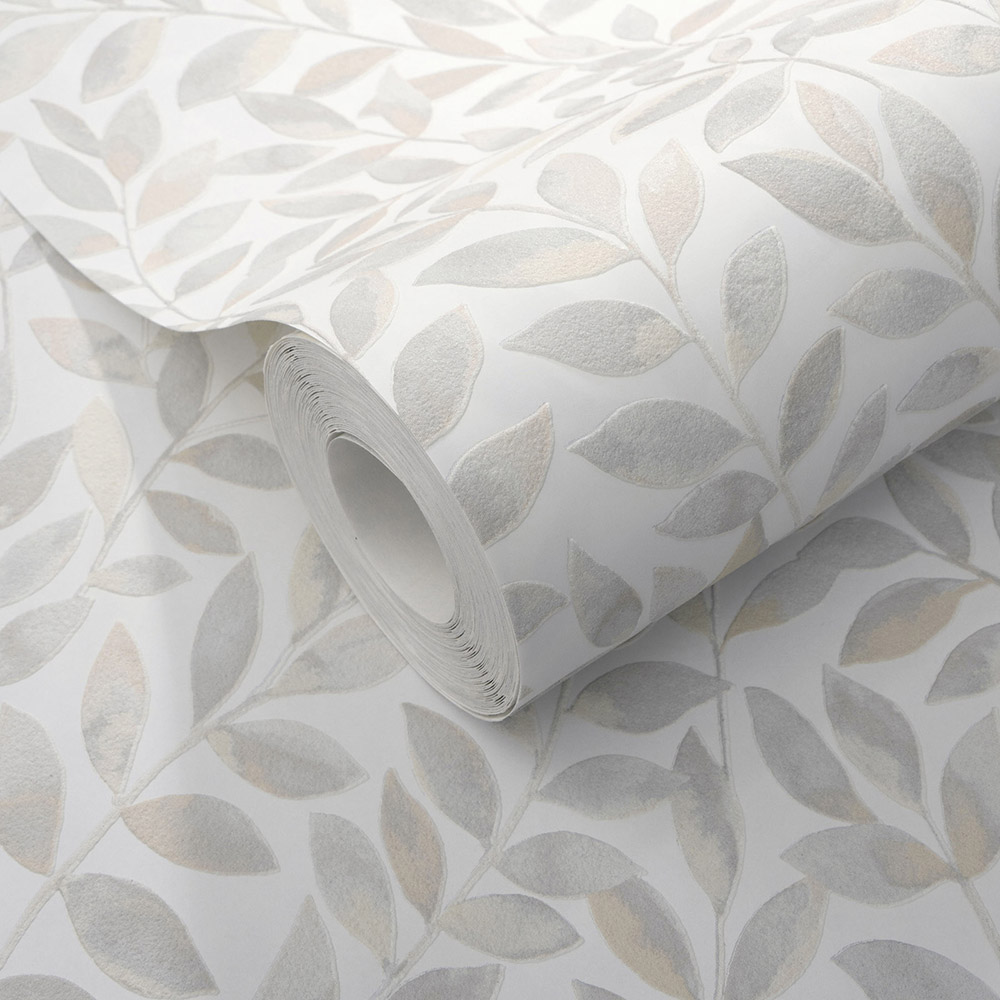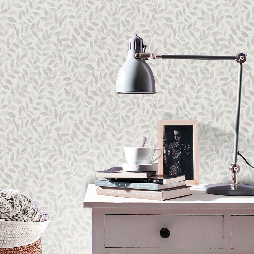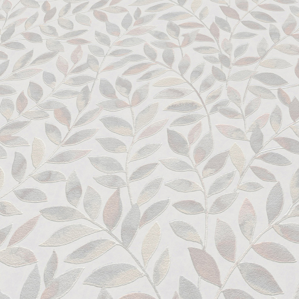 Vliestapete Blätter Ranken Weiß Beige Grau 10462-10