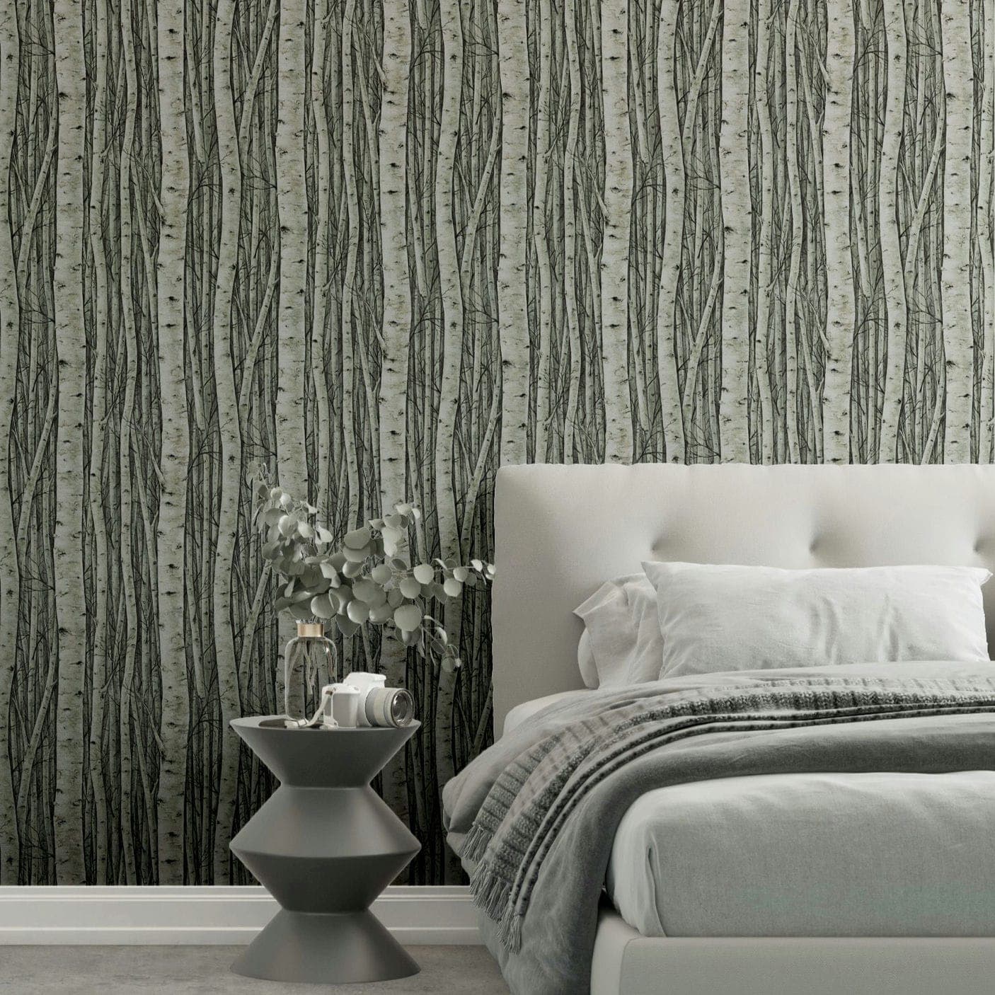 Lasse dich mit dieser Tapete aus der Kollektion Timber von Marburg von der beruhigenden Kraft des Waldes verzaubern. Mit ihr kannst du die die natürliche Schönheit von Holz und Natur in deine vier Wände bringen. Die Vliestapete 35380 zeigt ein Waldmotiv mit Birkenbäumen in Grün- und Grautönen. Entdecke die gesamte Kollektion jetzt bei uns im Shop.