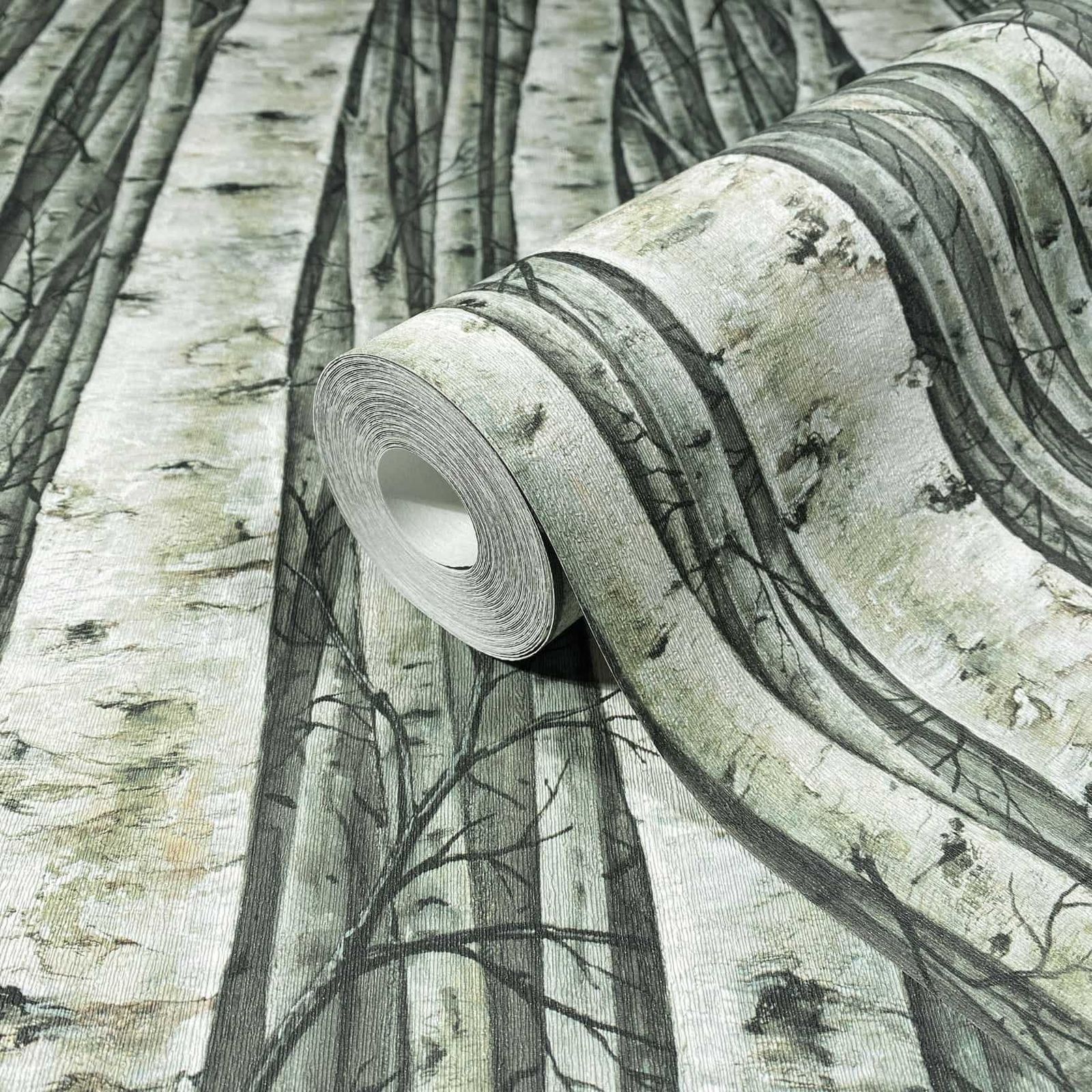 Vliestapete Wald Bäume Natur Motiv Grün Grau 35380 Raum -44%