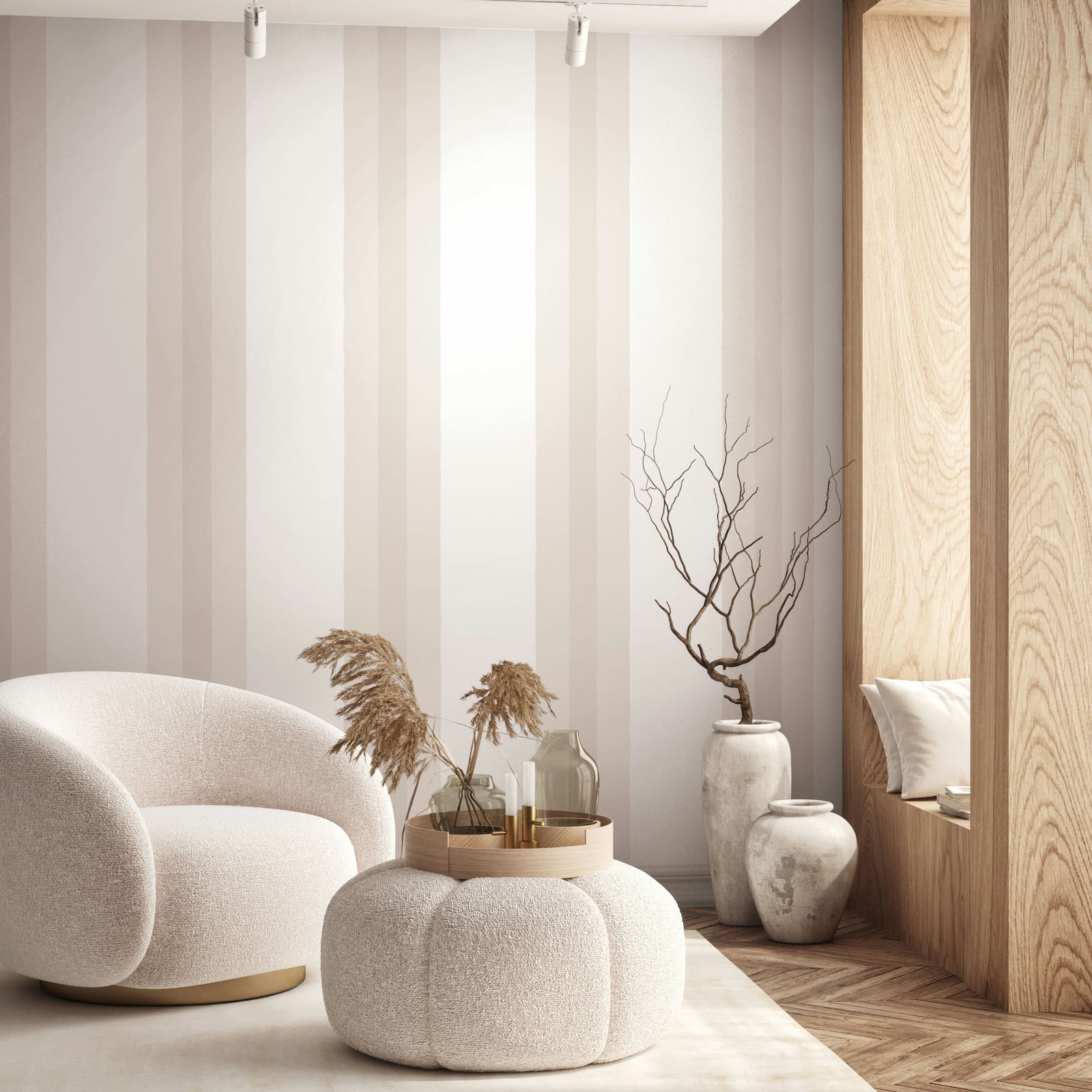 Tapeten Musterartikel 82564 1,95 € Lasse dich mit dieser Tapete aus der Kollektion Oriana von Novamur von einem Spiel aus Licht, Struktur und sanfter Bewegung verzaubern. Sie ist eine Hommage an die Schönheit der Natur und die Kunst des Wohnens und verleiht deinen Räumen eine zauberhafte Atmosphäre. Die Vliestapete 82564 zeigt ein Motiv mit Blockstreifen in Aquarelloptik in Creme- und Beigetönen. Entdecke die gesamte Kollektion jetzt bei uns im Shop.
